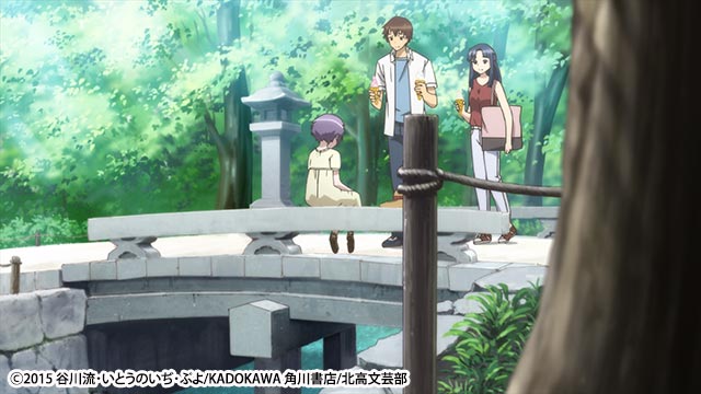 境内の小川と橋、鳥居の場面